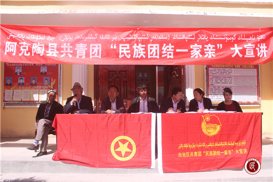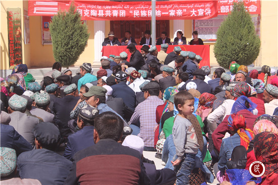 新疆民生网讯 (通讯员 方鑫)2017年4月14日,克州林业局驻村工作队组织召开“民族团结一家亲”宣讲大会,皮拉勒乡政府邀请阿克陶县共青团干部、本乡民族团结优秀代表向琼巴什村的广大村民进行了宣讲。
