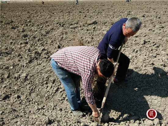 到达目的地,村主任肯加太进行了人员分工,两人一组负责一条垄沟,一人在前面用铁锨挖坑,一人在后面将树苗放到坑中,用土埋起来,一条条垄沟好似一条条龙舟,每组人员你赶我超,场面热火朝天,别开西和杰恩斯努尔两个人遥遥领先于其他组员,看得出来这两人的植树水平在所有的人里面是最高的,第二名是阿扎提努尔和朱马汗,这两人也是不甘示弱,紧随其后。
