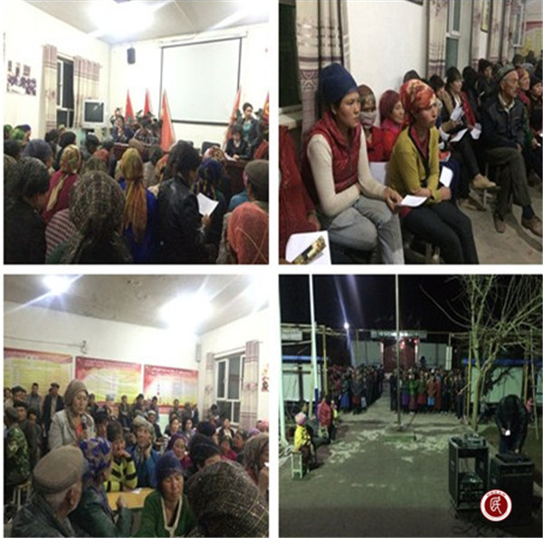 新疆民生网讯 (通讯员 葛晓蜜)“起来,不愿做奴隶的人们……”近日来,傍晚时分,村民们齐唱国歌的声音回绕在喀拉布运村大队部的大院里。