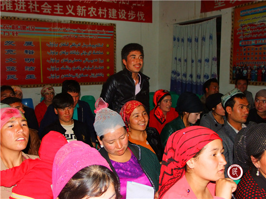 精心设置,丰富课程设计“调色板”。工作队以提高农民综合素质为出发点,以丰富农民文化生活为主要内容,积极创设符合大众口味的授课方式,采取公共基础知识与专题培训相结合、理论学习与实践锻炼相结合、学习政策与实用技能相结合、双语知识与传统文化相结合、优质师资与乡土人才相结合、集中教学与分散教学相结合的“六结合”模式搭建培训平台,以资源共享、优势互补的方式做活教学课堂,用通俗易懂接地气的语言为村民上好每一堂课。课程设置以课堂教学为主,每天2小时的培训课程按照“1+0.5+0.5”的授课模式进行分配,授课教师1小时讲授基础汉语,半小时培训就业技能,半小时观看技能培训视频、红色电影、宣讲视频等影视资料,丰富的学习资源和活跃的教学氛围让大家的学习兴趣倍增。村民阿克孜·艾力在课堂上听得认真、记得仔细:“能在村里聆听硕士、博士等高素质人才讲课很是难得,我一定会珍惜机会,多向老师们请教问题,积极学习文化知识,提升自己的本领,为就业创业打下良好的基础。”