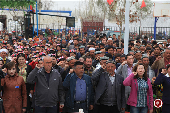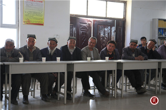 同时,工作队与村党支部安排部署了系列宣讲活动,一是利用升国旗的机会,由工作队队长、村支书和草根宣讲员向广大群众进行宣讲吾布力喀斯木·买吐送事迹;二是工作队队员入户走访时,向村民宣讲吾布力喀斯木·买吐送事迹;三是分别组织召开全体党、团员、入党积极分子、“四老”人员、宗教人士、十户长座谈会;四是利用村民夜校、学校课堂、双语课堂等多种场合,大力宣传共产党好、伟大祖国好、各族人民大团结好,激发村民揭批“三股势力”罪恶本质,远离极端宗教思想渗透,让村民充分认识到:“三股势力”不是强壮民族肌肉的神丹妙药,而是危害民族健康发展的癌细胞,在农村营造社会稳定和民族团结的浓厚氛围。