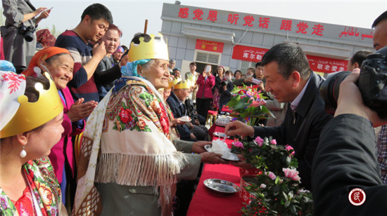 活动围绕敬老爱老主题,开展为老人送一份礼物,献一盆花,唱一首歌,吃一块蛋糕、洗一次脚,合一张影的“六个一”活动,系列活动穿插儿童舞蹈、歌唱朗诵,现场欢声笑语、热闹非凡。其中为老人洗一次脚,请老人吃一块蛋糕环节将活动推向了高潮。现场10位70岁以上老人的子女和部分“访惠聚”工作队员为老人们打来了温和的洗脚水,仔细为老人洗了一次脚。州派第一检查指导组钟组长、库尔勒市吐尔逊江市长、英下乡张书记等领导为四月份过生日的10位老寿星们切蛋糕,送蛋糕并献上诚挚的祝福。在深情的拥抱和真诚的祝福声中,老人和子女们流下了感动的泪水