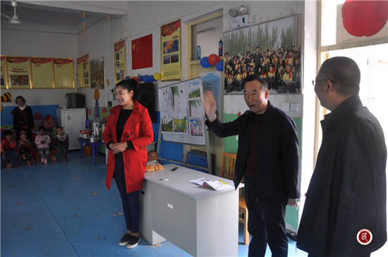 (通讯员 郭俊峰)4月14日,自治区地税局党组成员、政治部主任、“访惠聚”驻村工作队总领队念学剑到和夏阿瓦提乡墩吕克村视察指导工作,同时看望了村两委干部、党员和幼儿园小朋友。