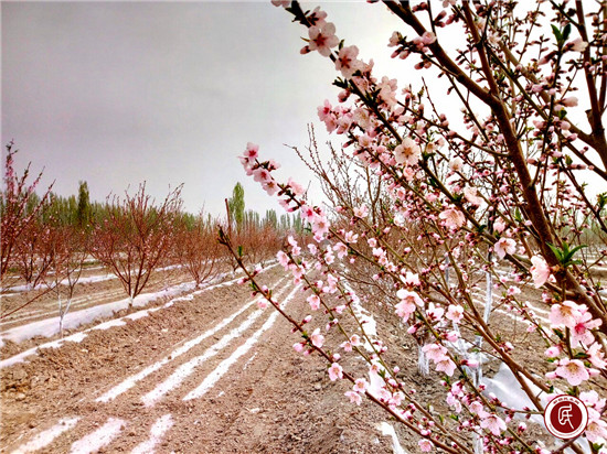 四月的萨依买里村,莺飞草长,鲜花盛开,姹紫嫣红,整个村庄被淹没在花的海洋。正如村支书所说,村庄已不再是来时的模样。这是一片充满希望的大地,原野上,庭院里,桃花开的正艳,绯红的令人心醉,盛开的桃花像一片片五彩祥云,预示着萨依买里村将会变得越来越美好。