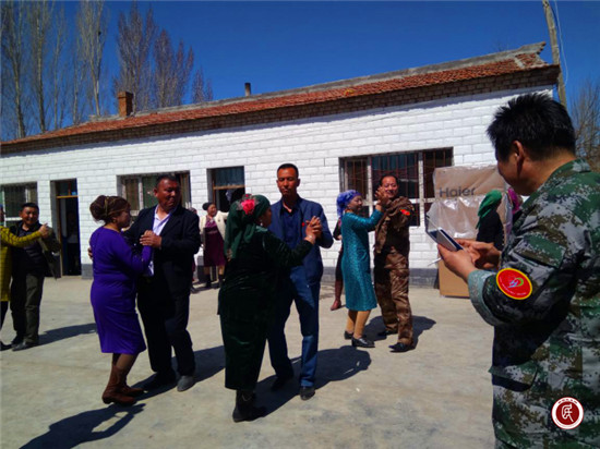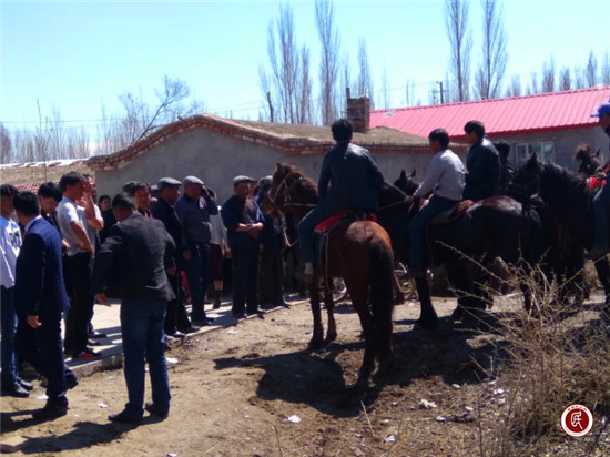新疆民生网讯(通讯员 马志刚 )2017年4月15日,八师驻开干齐工作队及村两委受邀参加村民江赛提的女儿古丽加娜提的婚礼。