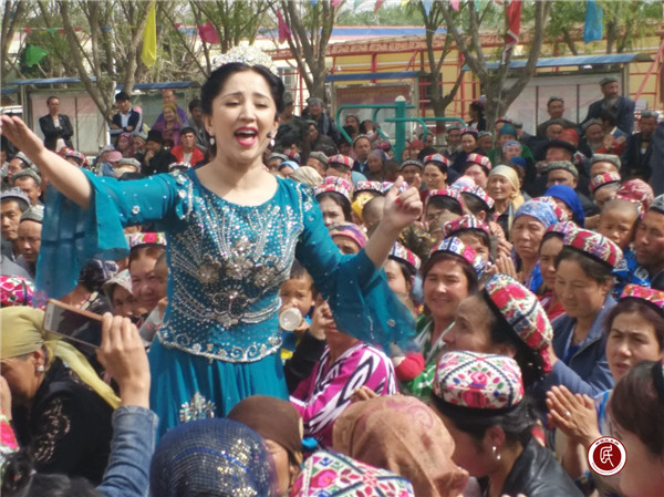 新疆艺术剧院歌舞团著名作曲家、歌唱家穆汗莫德·苏莱曼是《丝绸之路好声音》的专业导师,他在村民中影响广泛、认知度极高,受到了所有村民“来一首,再来一首”热情邀请,翻唱了《向天再借五百年》、《诺鲁孜之花》等传唱度极高歌曲;《顶碗舞》在美丽姑娘倒出象征着吉祥、美好寓意的纯洁之水后,引来了村民雷鸣般的掌声。众多电视上出现的明星加盟演出,给全乡村民造成轰动,七村八乡许多村民听说后,也早早来到表演现场,许多村民都说:这是我村有史以来规模最大、力度最大、影响最深远的一次文化惠民演出活动,我们感到十分高兴。