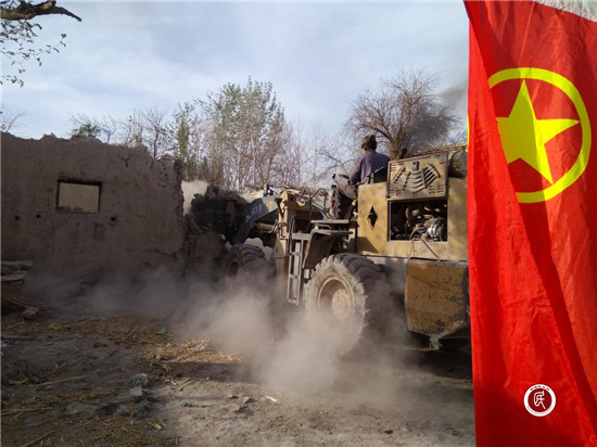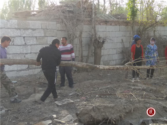 新疆民生网讯(通讯员  陈瑾)“快让让,让让,又一车土来啦……”司机开着铲车突突突的从院子里面出来,院内院外一阵热火朝天。原来是蚕种场村工作队和村里的青年志愿者正在为本村独居老人清理庭院,规划三区分离。