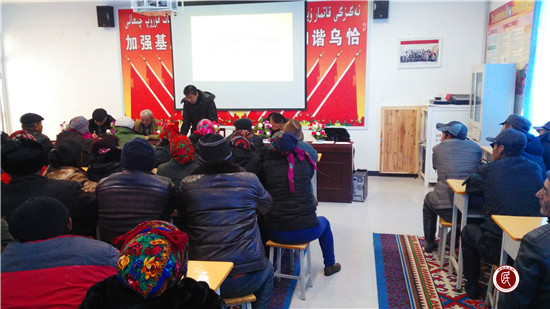 新疆民生网讯 (通讯员 张治新)4月19日,乌恰县黑孜苇乡库勒阿日克村党委第一书记发声亮剑,组织驻村工作队、村“两委”班子、警务室人员及村民学习了社会稳定和长治久安的重要性,引发全村上下热烈反响,村民们一致表示要旗帜鲜明地反对分裂,坚决拥护中央的各项部署和采取的果断措施,紧紧围绕新疆社会稳定和长治久安这个总目标,各族人民手挽手、肩并肩,同暴力恐怖势力作坚决斗争,严厉打击“三股势力”,促进民族团结、宗教和谐、安居乐业。作为我们驻村工作队有责任和义务去维护新疆的稳定,给村民做好正面的宣传和引导工作。