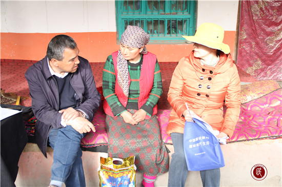 工作队在走访慰问途中遇到村民为明日出嫁的女儿做准备工作时,与村民进行宣讲,讲党的惠民政策、当前发生的巨大变化、祖国大家庭的温暖,教育群众要爱祖国、感党恩、听党话、跟党走。