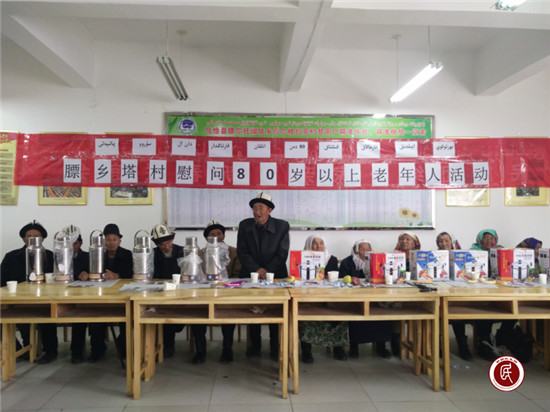 (图为:乌恰县政办驻膘尔托阔依乡塔尔尕拉克村工作队开展慰问老人活动)