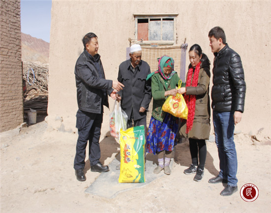 克州食药监局驻吾合沙鲁乡吾合沙鲁村工作队采取上门走访、座谈交流等形式亲切慰问了吾合沙鲁村9名“四老人员”,并赠送慰问品,转达了党和政府对“四老人员”的关怀。
