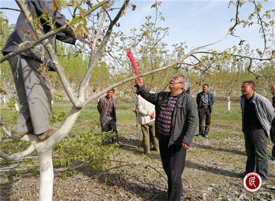 新疆民生网讯 (通讯员 郝小燕)为提高农民农业技术水平,改变传统低产低效生产方式,4月19日,驻阿克苏市帕合特勒克村工作队邀请阿克苏地区农业技术专家,为村民开办农业技术培训班,就核桃载培技术、病虫害防治、核桃增产增效等知识进行了详细讲解。培训中,农业专家与农民交流互动,详细解答农民提出的问题,进一步增强了农户发展农业种植的信心和积极性。同时,培训班结束后组织10余名农民到农户果园现场讲解核桃修剪技术,手把手教农民如何提升挂果质量,如何提升核桃品质,真正的让农民学到技术,用到实处。