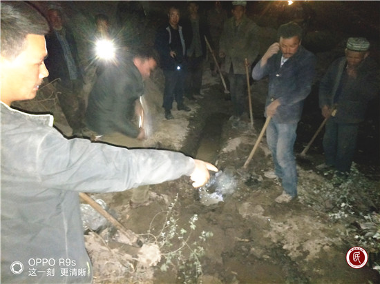 原来,下午麦麦提·艾买提为了给棉地浇水,挖开渠坝口,从主渠引流进分渠灌溉。不料,水流太急,决口越来越大,淹没了棉花地,漫过田埂,流进了旁边的住房。眼看房子浸泡在水中,水流湍急又封堵不住,黑夜中无助的麦麦提·艾买提情急之下,想起了每次来家中走访时驻村工作队的叮嘱“有什么困难随时来找我们”,连忙找到工作队贴下的连心卡,打出了求助电话。