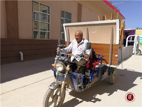 与曲曼古丽一样享受到家具捐赠项目的还有村里的老党员斯迪克·吐尔洪,身体一向不太好的他,非要自己亲手把家具放到三轮车上,仔细的绑好绳子,深怕碰坏了哪里,小心翼翼地运回家中后,整齐地摆放在了院子里,忍不住叫来左邻右舍和他一起试用起来。“没想到我这么大年纪了还能享受到这么好的东西,这是托了工作队的富,托了部队的富呀!现在党的政策太好了,支持我们贫困户发展的政策也太好了,我是一个老党员,虽然年纪大了,别的事情干不了,但是我会发挥好自己的作用,做好宣传,当好旗帜,把我自己的故事、把党的政策都讲给村民们听!”斯迪克动情地说。
