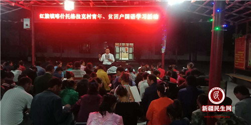 新疆民生网(赵伟玺)5月23日,红旗镇喀什托格拉克村国家通用语言学习班的100余名“学员”像往常一样,太阳落山后带着小板凳来到村委会大院,排排坐好后等着老师上课,继续给自己“充电”。