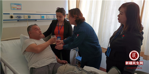 辖区居民卡哈尔曼·阿布列米提因车祸导致截肢,常年在医院治疗,第十二社区慰问小分队来到医院,看望正在治疗的卡哈尔曼·阿布列米提和妻子,叮嘱他坚持康复训练,时时感恩家人陪伴。他说:“我们更要感谢社区,这么多年一直关爱着我们这个家庭,有你们在,我们就感觉有了主心骨。”