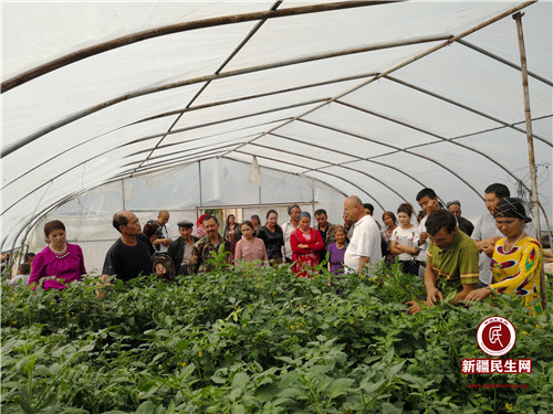 在大田里、村民的蔬菜拱棚里,村科技副职窦秀宽就菜苗如何正确移栽、施肥、打埂等管理方面的技术对村民进行了详细讲解,并告诉大家在蔬菜如何防虫、防病等知识。对村民提出的蔬菜拱棚管理中遇到的问题,窦秀宽一一耐心地解答。“通过面对面的交流学习,不仅让我们直观地学习了种植方法,掌握了管理知识,还提升了我们大家的蔬菜种植管理水平,带动林果及庭院经济发展。” 艾合买提·托合提说。