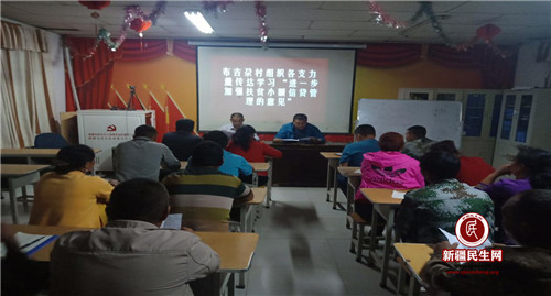 新疆民生网(赵新红)2019年6月23日晚,布吉尕村组织村“两委”班子成员及“访惠聚”工作队全体成员学习了新疆维吾尔自治区扶贫开发领导小组文件《关于进一步加强扶贫小额信贷管理的意见》,布吉尕村第一书记阿迪力·阿不都外力带领大家学习了文件中“用好扶贫小额信贷政策”、“严格贷前三级”、“严格贷款发放”、“严格贷后监督管理”、严格风险控制等内容。
