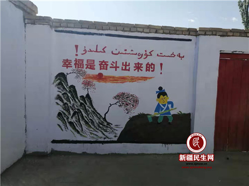 新疆民生网(李群)七月初,亚吐尔村大学生陆陆续续返乡,回到家乡的他们并没有闲下来,而是在乡党委、妇联、驻村工作队、村妇女主任的精心组织下,积极投身到为家乡助力脱贫攻坚社会实践活动中,他们将自己专业所学运用到家乡建设,在贫困户洁白的三区分离墙上,增添了一道道绚丽多彩的图案和激人奋进的标语,鼓励我村贫困户从精神上脱贫,将扶贫扶志扶智相结合。