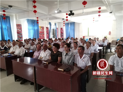 新疆民生网(田桂萍)为深入推进“不忘初心,牢记使命”主题教育活动,贯彻落实党的十九大精神,7月29日上午,赛里木村开展了 “学习张富清同志先进事迹”活动,赛里木村党员干部、“访惠聚”工作队成员参加了此次活动。