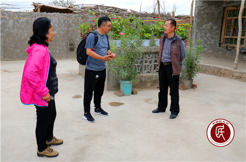 (上海东方卫视援疆干部刘江贤向萨罕乡19村第三批工作组组长闫泽武询问了解村里的基本情况)
