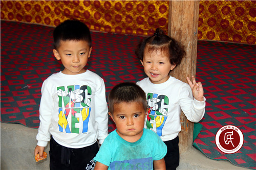 (上海东方卫视援疆干部刘江贤家里的小朋友与萨罕乡19村的小朋友合影留念)
